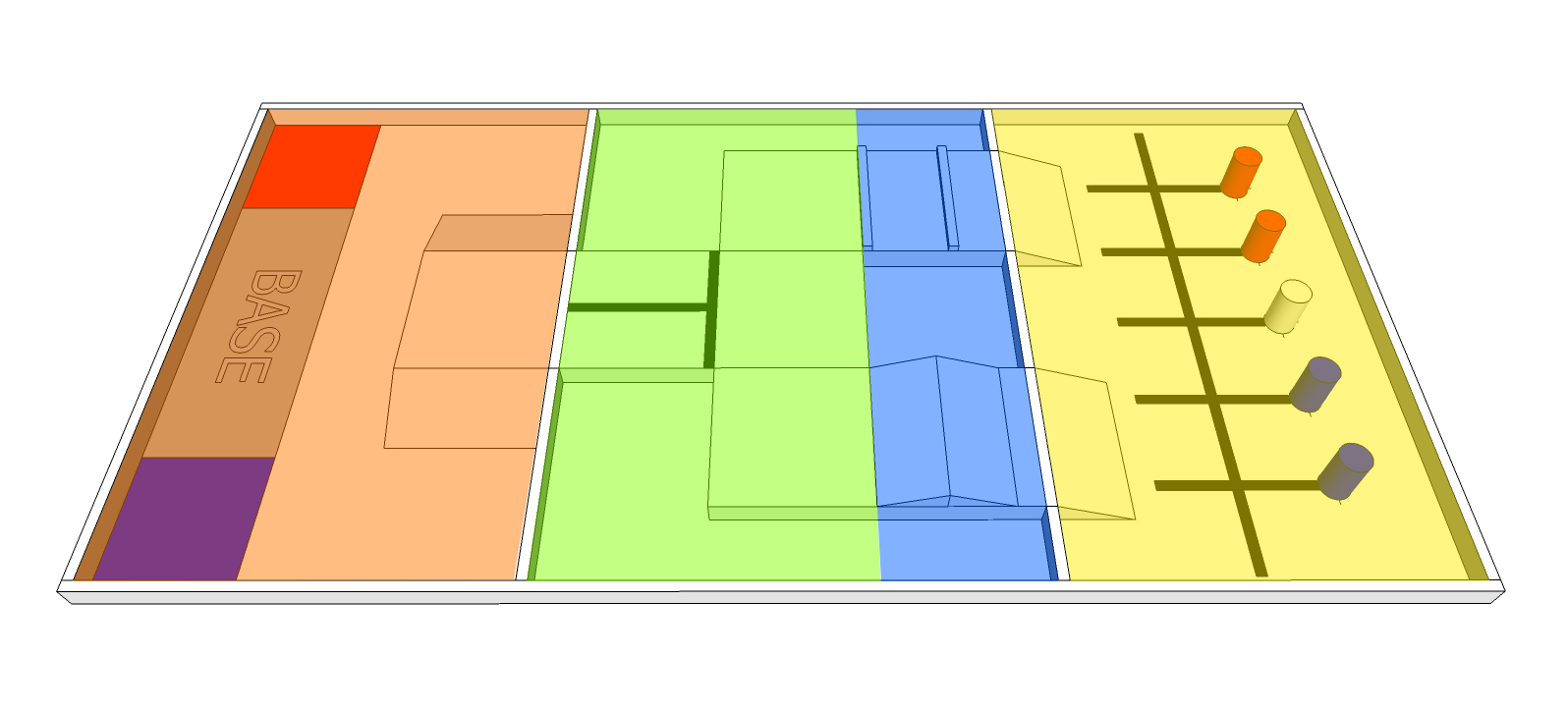 Es ist die Aufgabe des Roboters von Zone A zu Zone D über die Brücke zu reisen, die farbigen Zylinder einzusammeln und diese in die farblich entsprechenden Bereiche in Zone A zu bringen. Dort müssen sie in vertikaler Position aufgestellt werden. Der Roboter darf in Zone B und C die Spielfeldmatte nicht berühren. Es gibt insgesamt vier farbige Zylinder (2 rote, 2 blaue). Der weiße Zylinder darf nicht eingesammelt werden. Daher gibt es eine Strafe (10 Punkte abzug), sollte der weiße Zylinder die Zone D verlassen. Die Position aller fünf Zylinder wird zufällig bei Start jeder Runde (d.h. jeder Qualifikations- und Finalrunde) festgelegt. Die Position der Zylinder bleibt für alle Teams innerhalb einer Runde gleich.