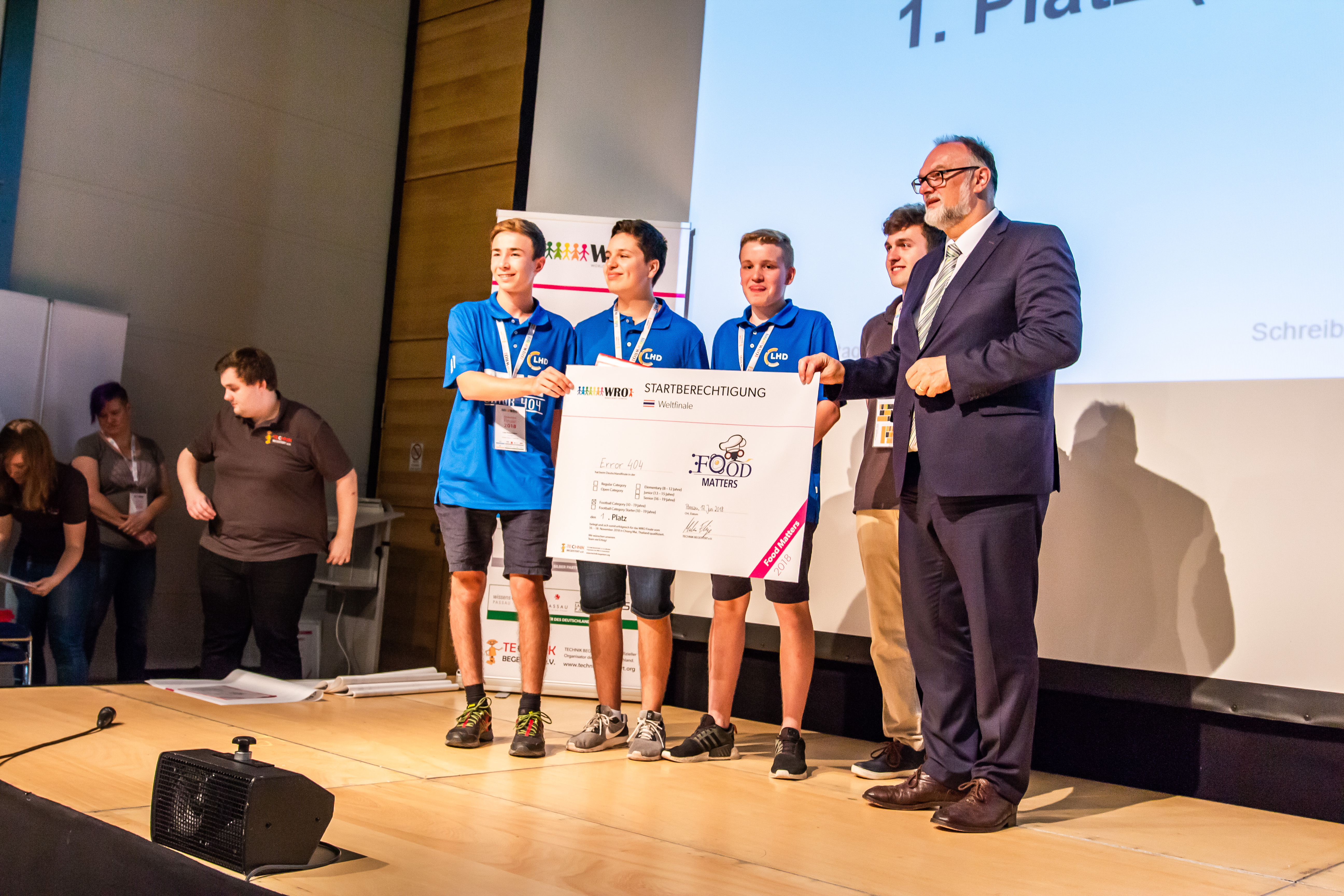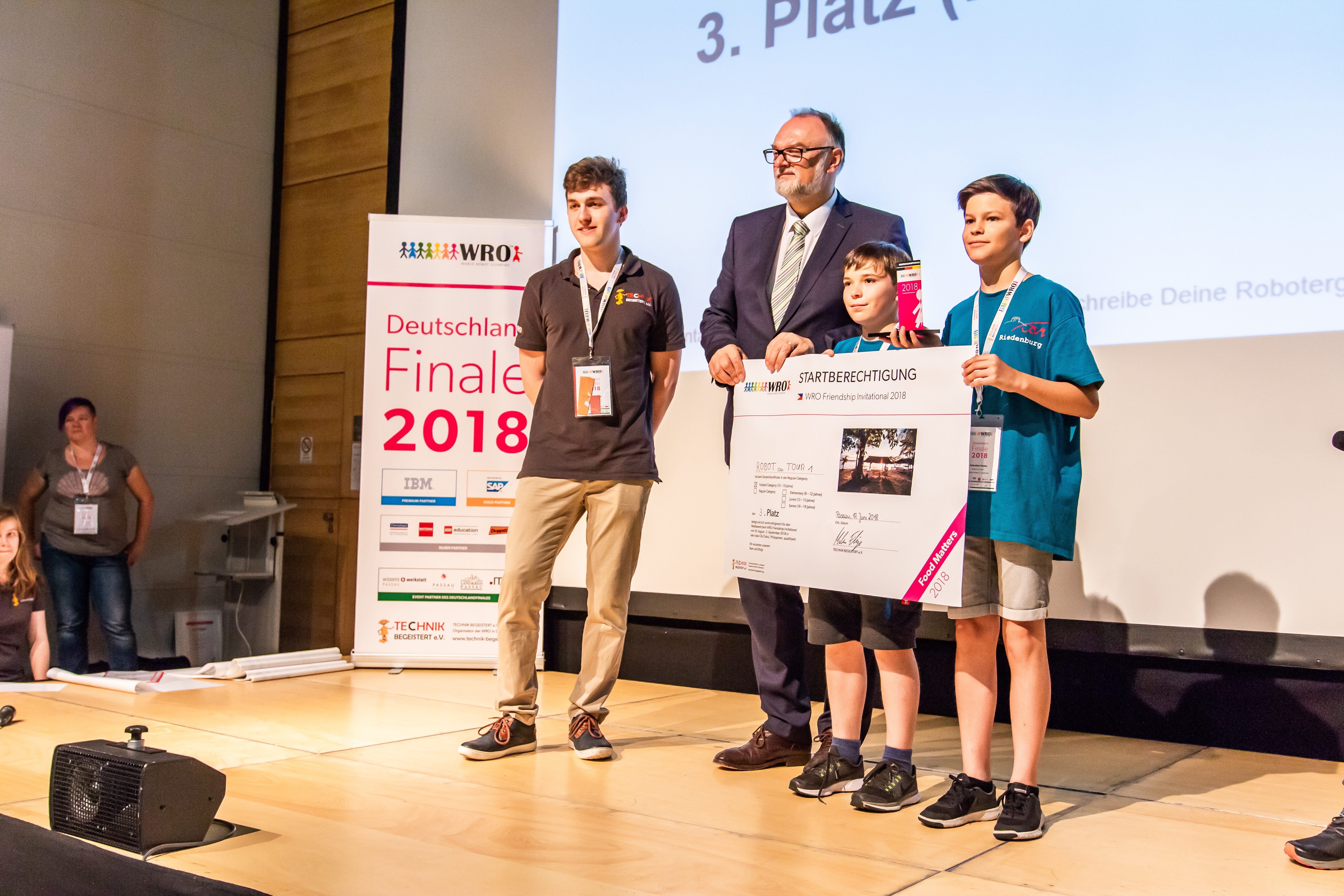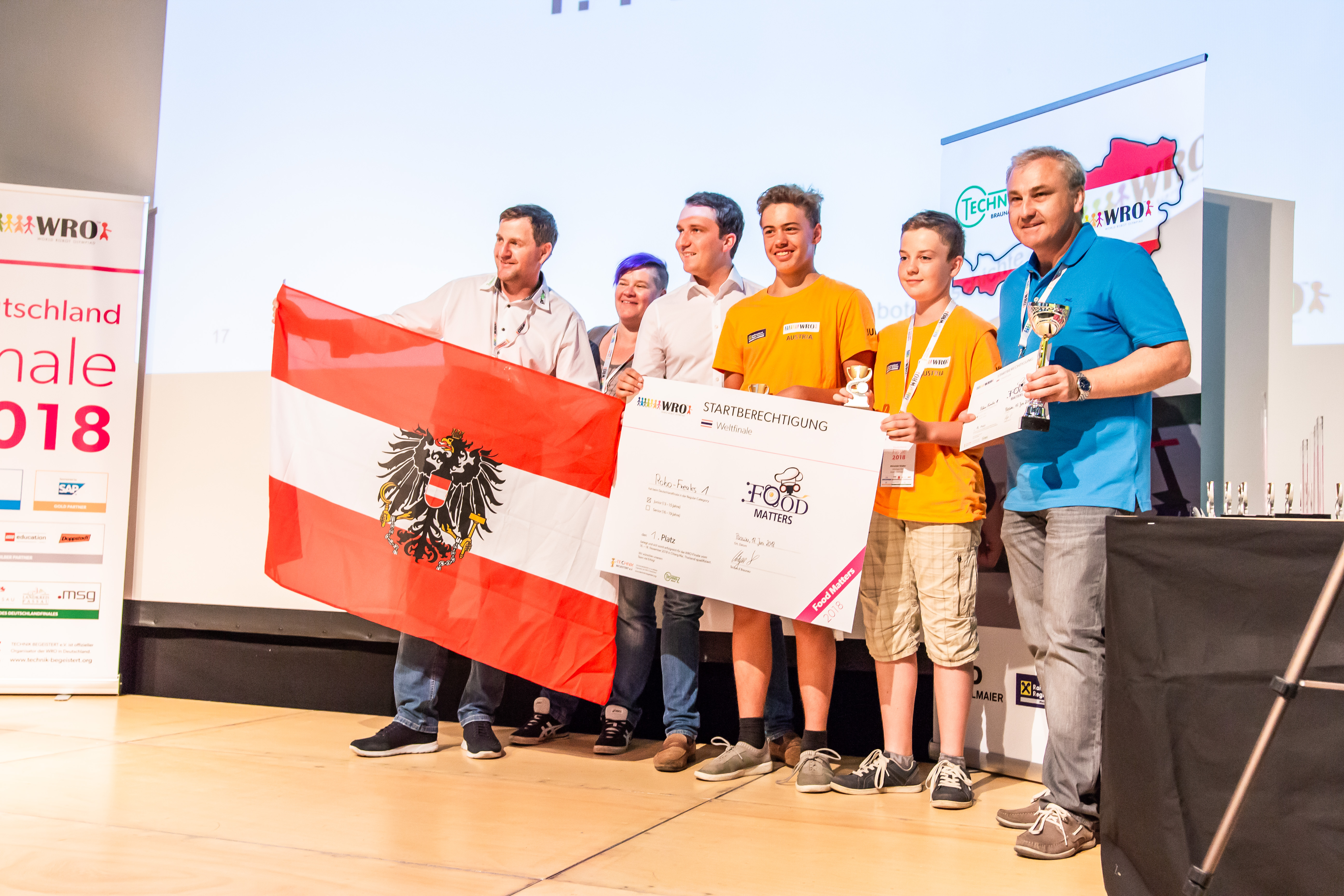 Beim Deutschlandfinale in Passau sind zum ersten Mal österreichische Teams zum ersten WRO-Wettbewerb für Österreich angetreten. Gerne haben wir dies im Rahmen des Deutschlandfinales ermöglicht, ab dem nächsten Jahr wird die WRO vor Ort durch das Techno-Z in Braunau weiter vorangetrieben. Die beiden besten Teams aus Österreich dürfen auch beim Weltfinale in Thailand antreten. Die Startberechtigungen wurden übergeben von Gerald Weilbuchner, Landtagsabgeordneter Oberösterreich, Herbert Ibinger, Geschäftsführer Techno-Z-Braunau sowie Karen Bebelaar, Program Manager World Robot Olympiad Association.