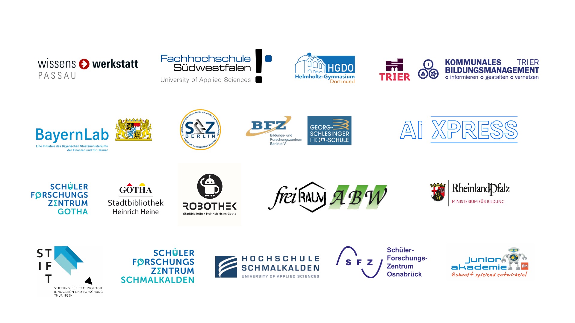 Bei der Vorbereitung und Durchführung unserer Aktivitäten, hier vor allem die Organisation der Wettbewerbe der World Robot Olympiad, arbeiten wir mit verschiedenen Partnerinnen und Partnern aus dem Bildungsbereich, der Wirtschaft, der Zivilgesellschaft und Politik zusammen. Dazu gehören: