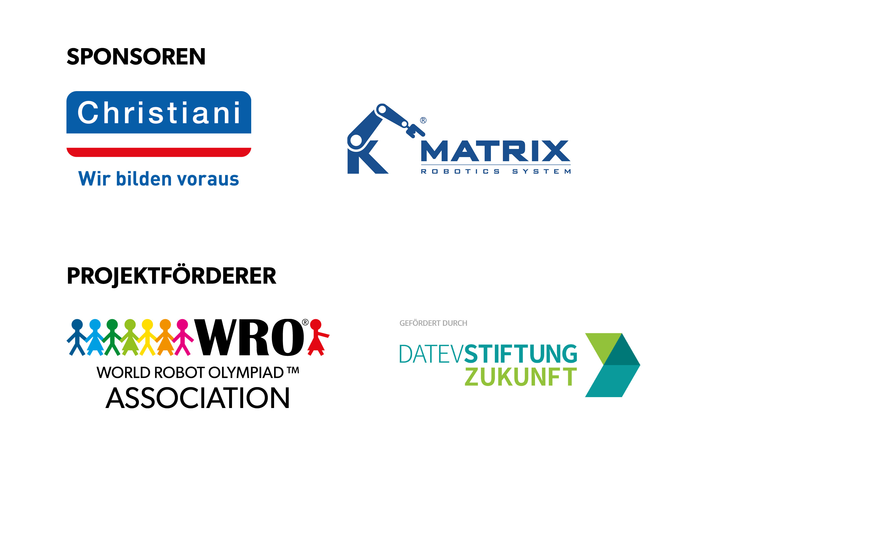 Unsere Sponsoren und Projektpartnerinnnen und -partner unterstützen unsere laufende Aktivitäten, vor allem rund um die jährliche Saison der World Robot Olympiad in Deutschland.