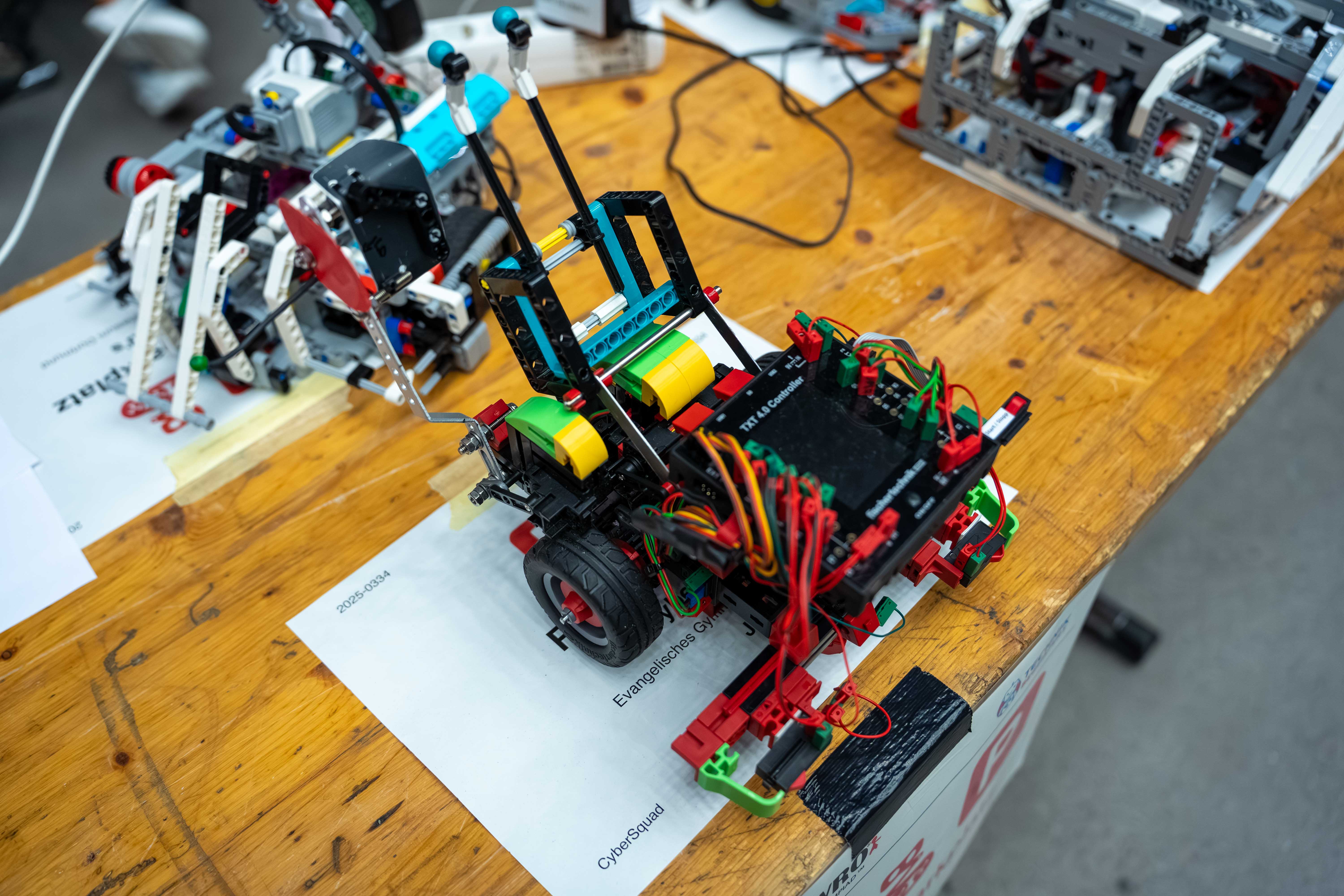 • Roboter z. B. LEGO® Education SPIKE Prime oder fischertechnik® Robotics TXT 4.0, Einkauf zum Beispiel über Christiani)